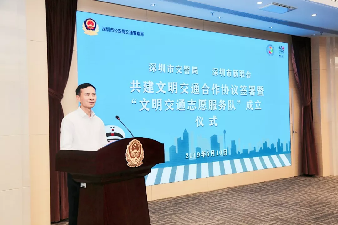 創(chuàng)文明交通城,做文明深圳人,新的社會(huì)階層人士在行動(dòng)。5月10日,深圳市交警局與深圳市新的社會(huì)階層人士聯(lián)合會(huì)(市新聯(lián)會(huì))成立“文明交通志愿服務(wù)隊(duì)”暨共建文明交通合作協(xié)議簽署儀式在深圳市公安局交通警察局舉行,市委統(tǒng)戰(zhàn)部常務(wù)副部長(zhǎng)范坤,市交警局局長(zhǎng)徐煒、副局長(zhǎng)陳顯東,市政協(xié)常委、市新聯(lián)會(huì)會(huì)長(zhǎng)馬少福等參加相關(guān)活動(dòng)。