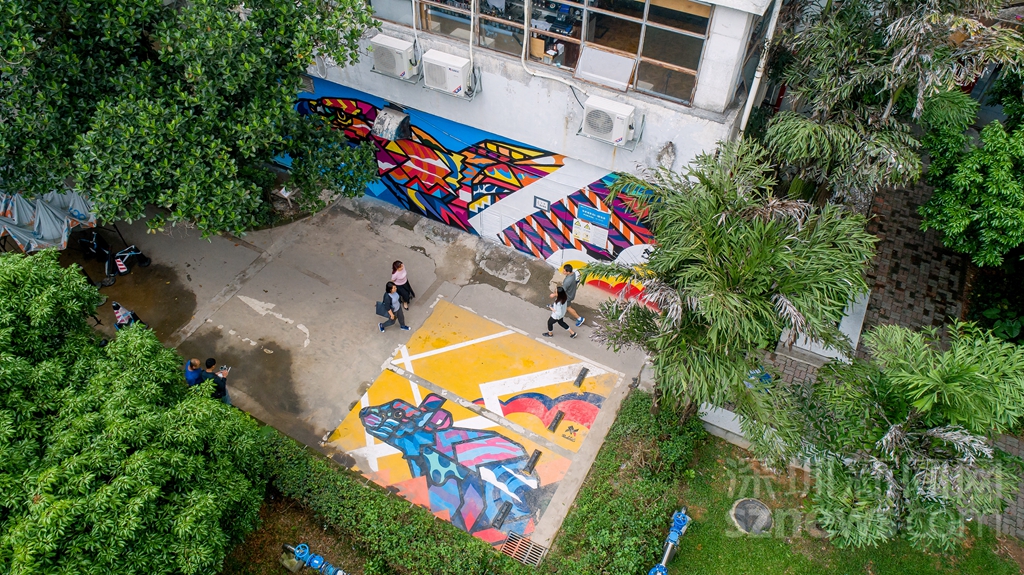 天空俯瞰花磚涂鴉作品《安全地帶》部分(主辦方供圖)
