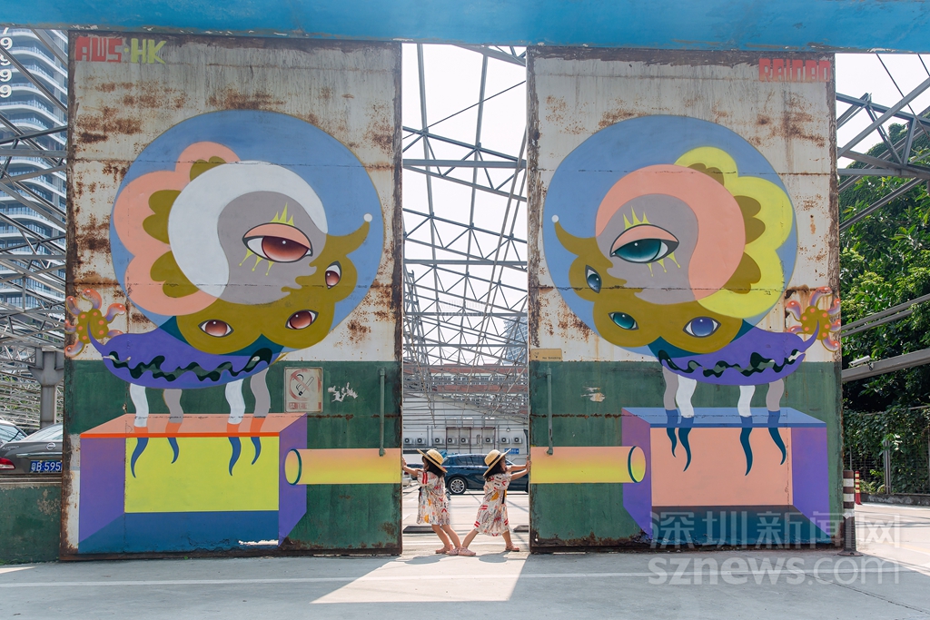 在城市公共空間中,涂鴉藝術(shù)不僅是一種重要的人文景觀,同時(shí)還能給人一種視覺享受,使單一的生活變得富有色彩。來自中國香港的全職藝術(shù)家彭怡擅長用涂鴉進(jìn)行故事創(chuàng)作,帶來作品《雙觀》,以左右對(duì)稱相望的停車場守護(hù)神的形象感染車主與行人,傳達(dá)平穩(wěn)冷靜的力量。