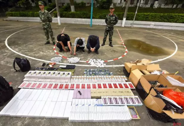 5月17日,十中隊(duì)官兵查獲一起飛線走私,這是清點(diǎn)繳獲的走私物資現(xiàn)場。