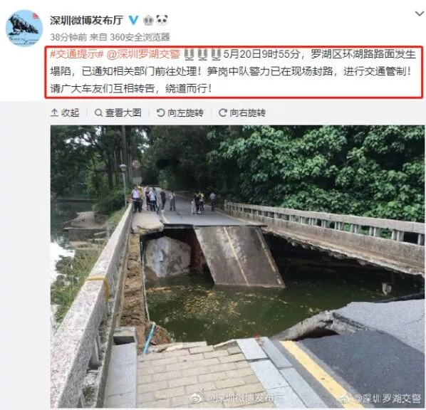 緊急提醒!羅湖環(huán)湖路路面發(fā)生塌陷,正封路進(jìn)行交通管制