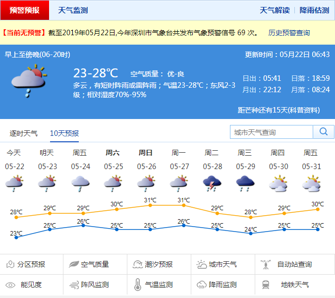 鵬城進(jìn)入“降雨模式”今日最低溫徘徊在23℃左右