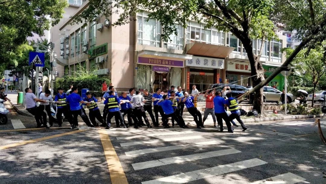 △2018年9月19日,“山竹”臺風(fēng)后,通心嶺派出所在百花片區(qū)做災(zāi)后清理工作