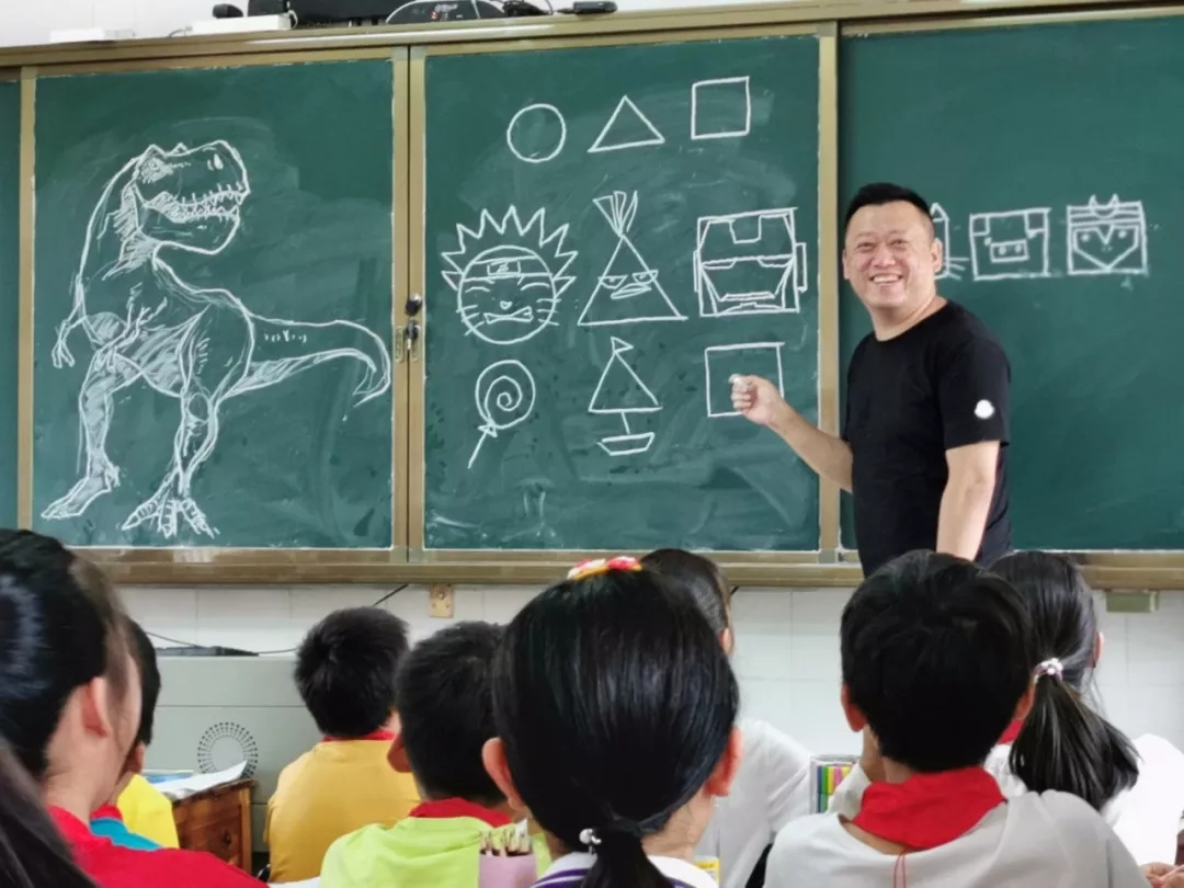 同學們在下面猜得熱火朝天,李老師卻一言不發(fā),繼續(xù)涂涂畫畫,漸漸的圖像露出了真容,一只栩栩如生的大恐龍出現(xiàn)在黑板上,教室里的小家伙們發(fā)出一聲聲驚嘆: