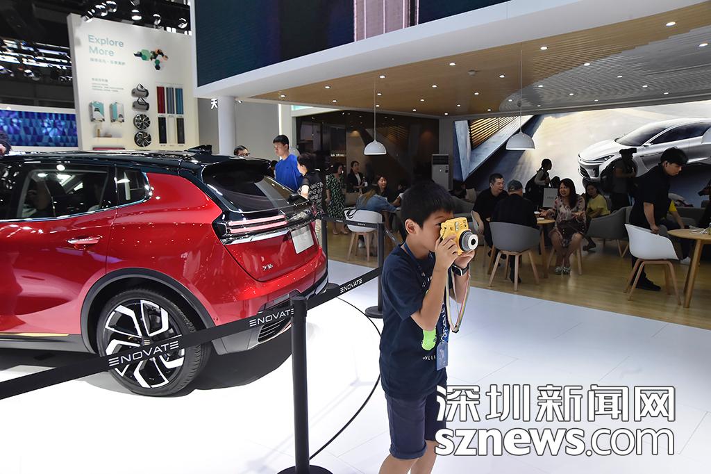 車展時(shí)逢周末,不少家長帶著自己的孩子前來參觀