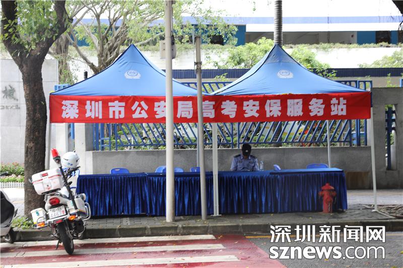 在深圳實驗中學中學部考點外,深圳市公安局設置有高考安保服務站