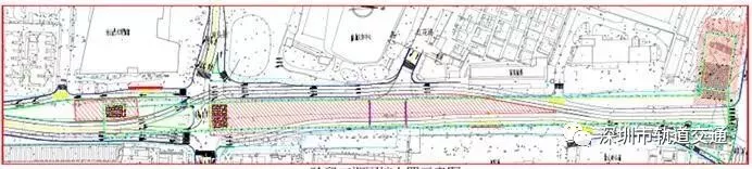 南頭古城站位于深南大道與南山大道交叉路口南側(cè),沿南山大道呈南北向布置,與規(guī)劃軌道20號(hào)線換乘。車站周邊均為商業(yè)、住宅或商住樓,基本為已建成區(qū)。路口處的春花天橋除梯道外均不能拆除,是本次交通疏解的難點(diǎn)。此次主要進(jìn)行西側(cè)地連墻及蓋挖段半幅頂板施工,路口處利用已施做蓋板進(jìn)行交通疏解。