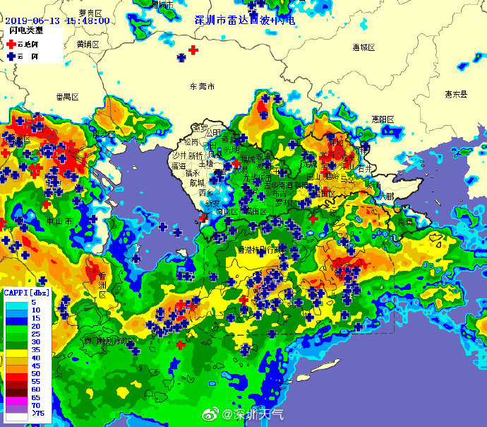 預(yù)計(jì)全市1-2小時(shí)內(nèi)將出現(xiàn)20-40毫米局部50毫米降水,深圳市氣象臺(tái)于2019年06月13日08時(shí)將暴雨黃色預(yù)警擴(kuò)展至全市,全市處于暴雨戒備狀態(tài),請(qǐng)注意防范。
