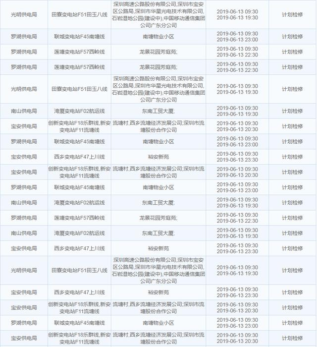 南方電網(wǎng)發(fā)布6月13日至6月16日深圳停電計(jì)劃 涉及多個(gè)區(qū)