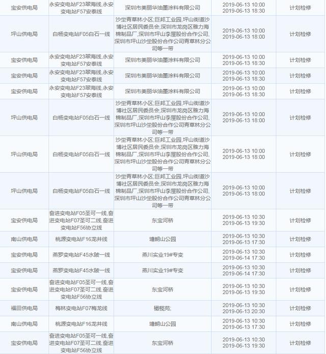 【6月13日停電計(jì)劃】