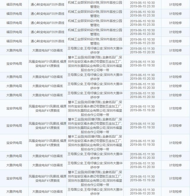 南方電網(wǎng)發(fā)布6月13日至6月16日深圳停電計(jì)劃 涉及多個(gè)區(qū)