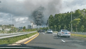 廠房上空黑煙滾滾