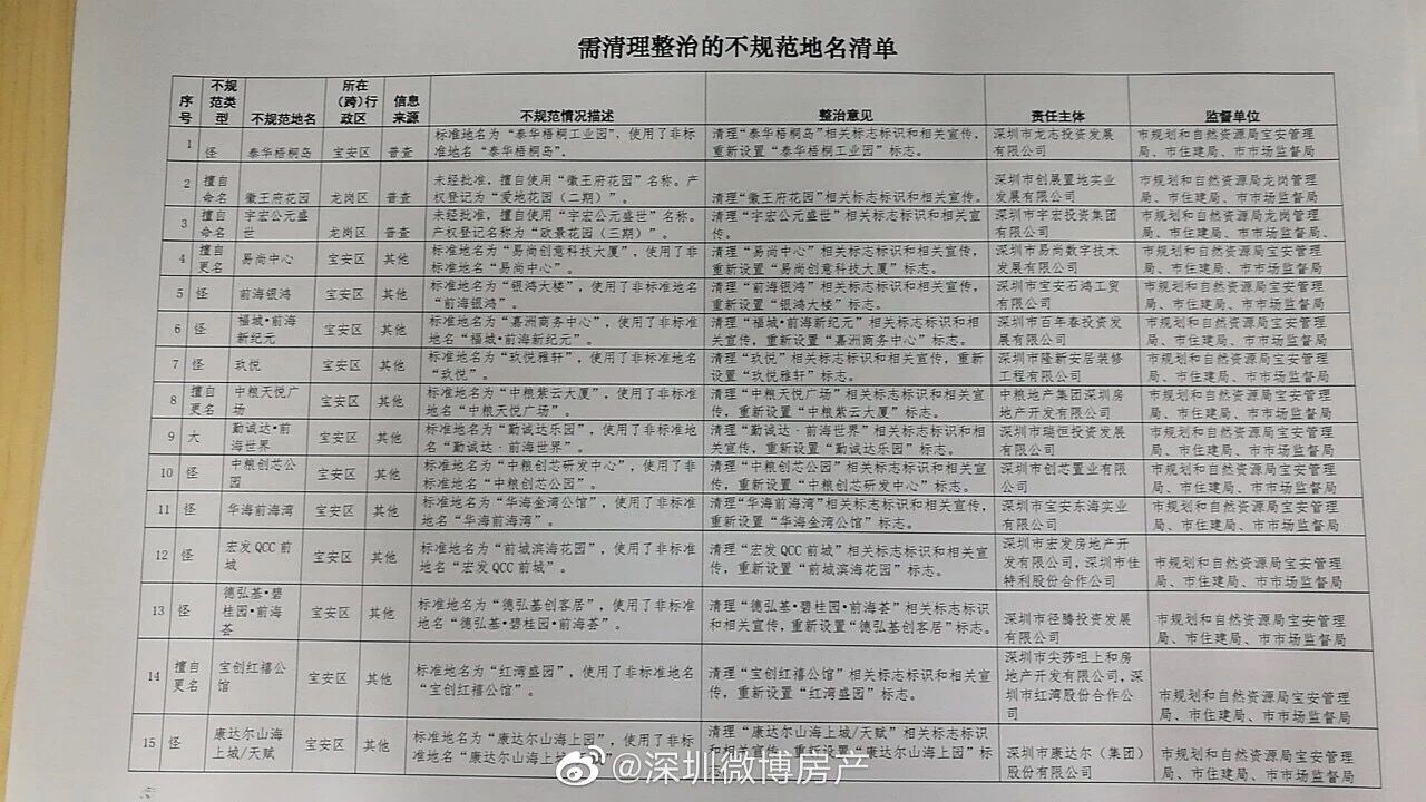 6月22日,深圳出爐了首批需清理整治的名單,涉及62個(gè)樓盤。記者從市規(guī)劃和自然資源局獲悉,深圳本次整治的重點(diǎn)為預(yù)售樓盤不規(guī)范地名使用和道路名稱不規(guī)范等問題,使用時(shí)間較長、社會(huì)和群眾認(rèn)可度較高的地名原則上不納入整治范圍。此外,整治原則上不涉及不動(dòng)產(chǎn)權(quán)證、戶口本、身份證等相關(guān)證照的變更。