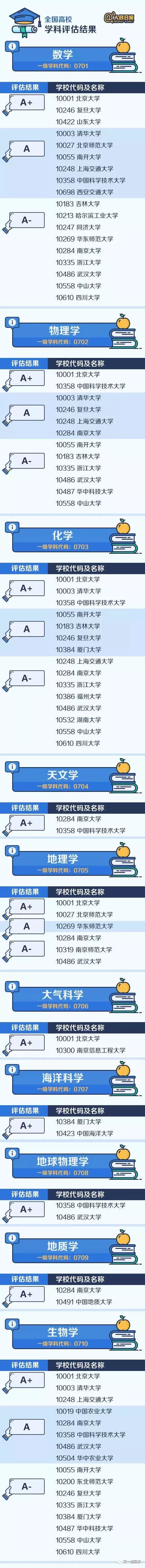 人民日報(bào)微博專門整理匯總了A類學(xué)科(包括A+、A、A-三檔),來看看這些中國最頂尖的學(xué)科名單都分布在哪些大學(xué)?