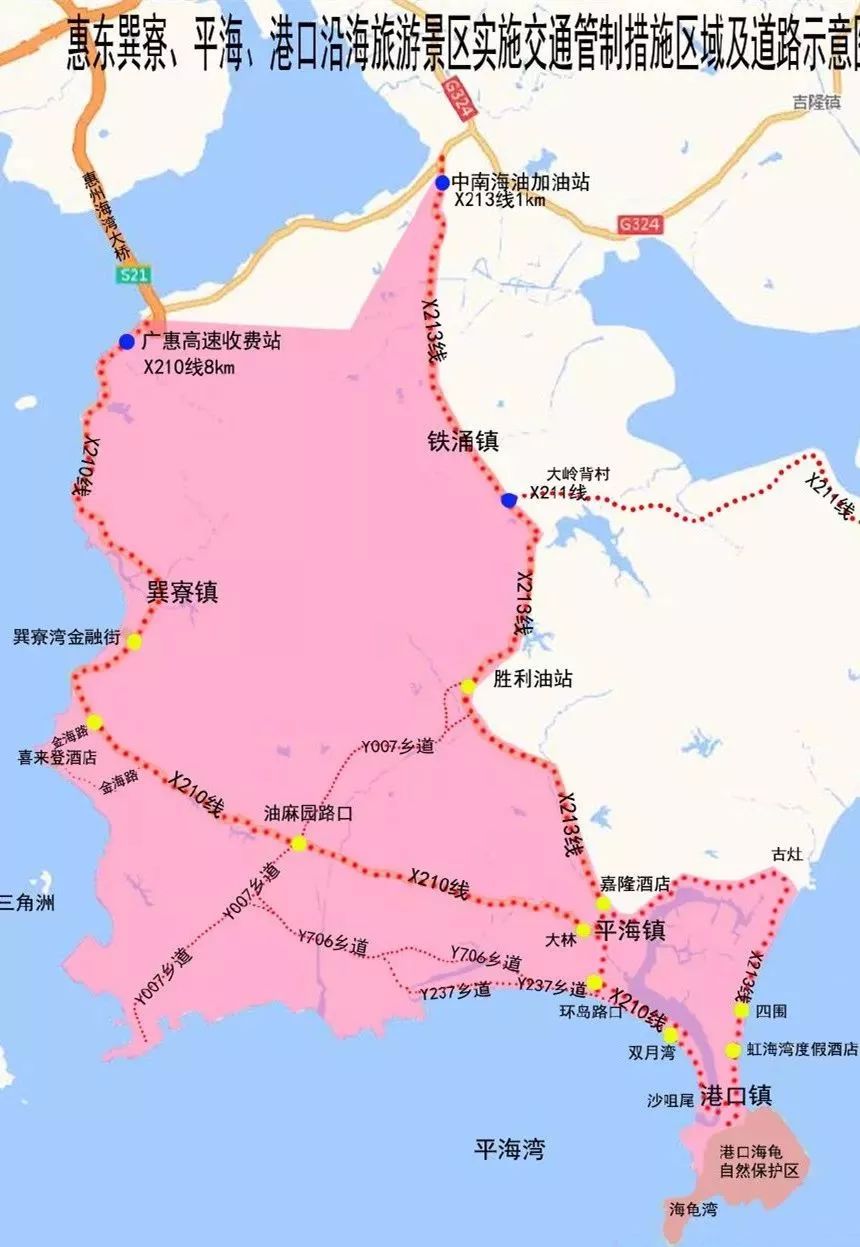 7月1日至8月31日(暑假期間)及中秋和國(guó)慶法定節(jié)假日,巽寮、平海、港口沿海景區(qū)全天候?qū)嵭袉坞p號(hào)進(jìn)入限行,違規(guī)罰200扣3分