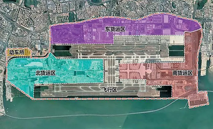 主要包括東貨運(yùn)區(qū)、南貨運(yùn)區(qū)、北貨運(yùn)區(qū)以及機(jī)場東動車所等四個功能分區(qū)。