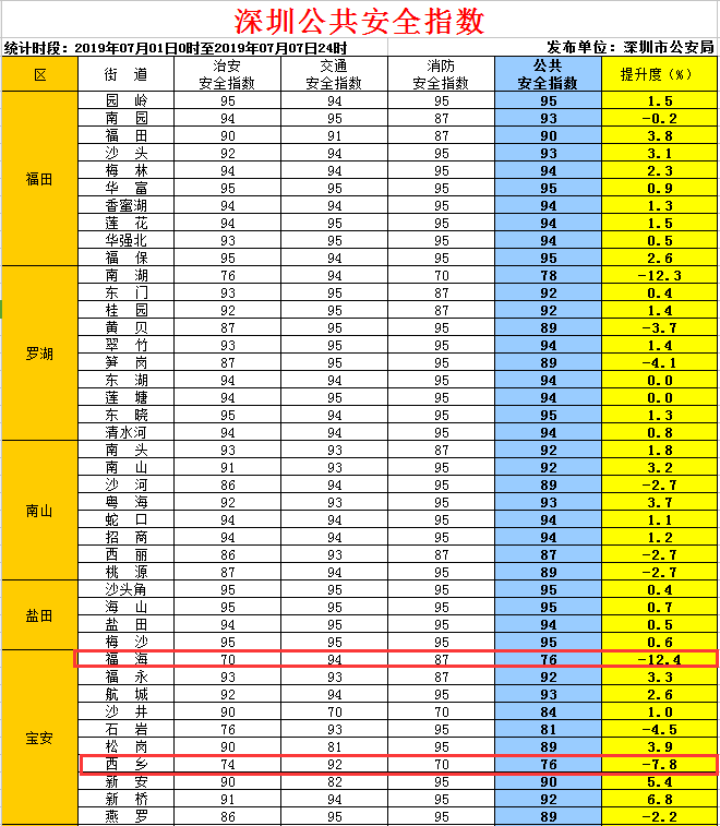 深圳公共安全指數(shù)發(fā)布 寶安這兩個街道全市倒數(shù)第一