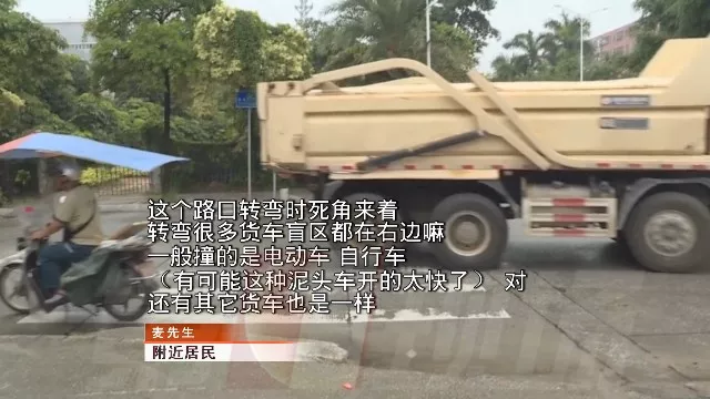 電動(dòng)車(chē)就正處于泥頭車(chē)盲區(qū)