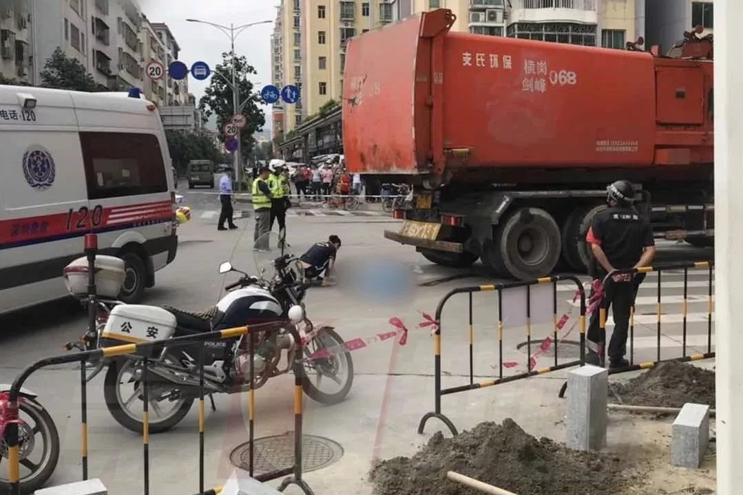 遭遇一輛右轉(zhuǎn)彎的垃圾運(yùn)輸車(chē)碾壓