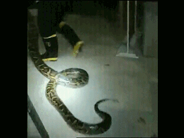 一條大蟒蛇突然竄至一民宿覓食