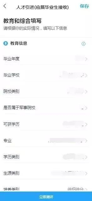 填寫完成后點(diǎn)擊下方測(cè)評(píng)按鈕,系統(tǒng)將對(duì)填寫的信息進(jìn)行測(cè)評(píng)。