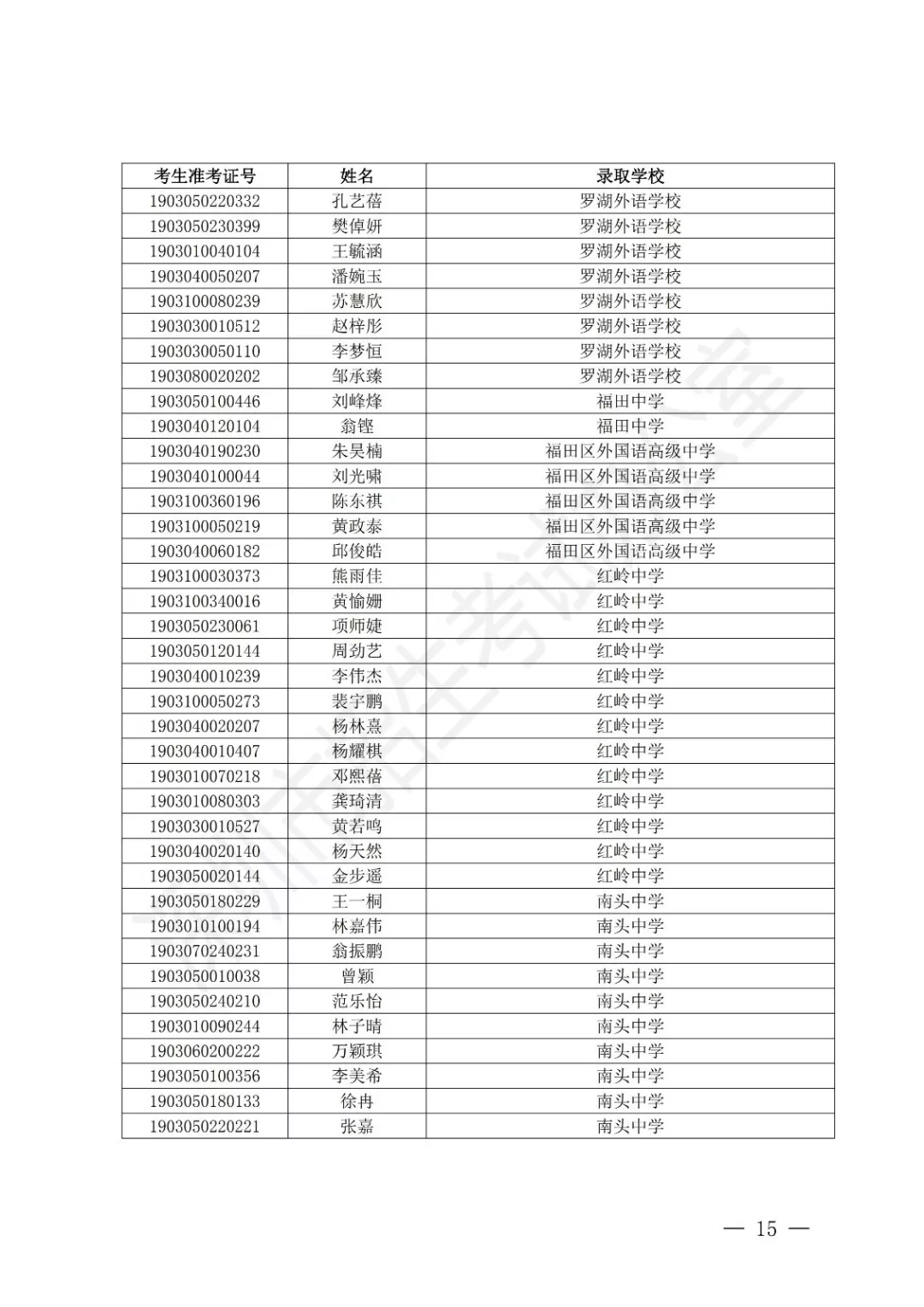 深圳公布2019年公辦高中特色團隊錄取標準 附錄取名單