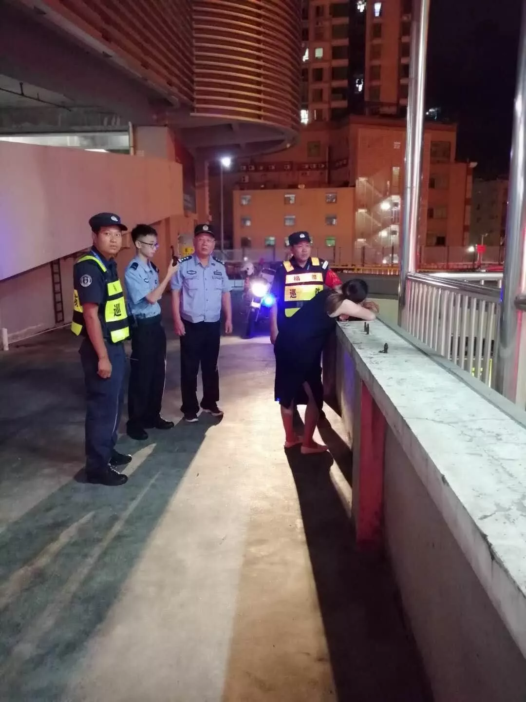 在巡邏到附近的一個(gè)簽到點(diǎn)時(shí),馬洪旺接到群眾報(bào)警稱,車港城二樓天橋上有一孕婦想要跳橋輕生。接報(bào)后,馬洪旺迅速趕往現(xiàn)場(chǎng)。馬洪旺得知,報(bào)警人是與輕生女子同行的男子。雙方因發(fā)生糾紛,女子情緒失控后聲稱要跳橋。男子勸阻無果,無奈之下,只好報(bào)警求助。