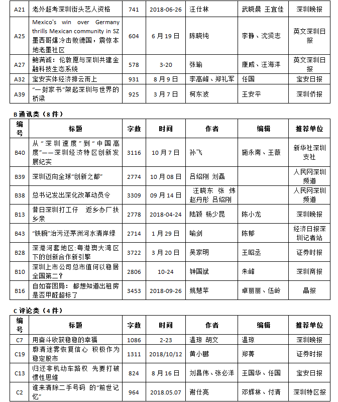 第26屆(2018年度)深圳新聞獎獲獎作品目錄