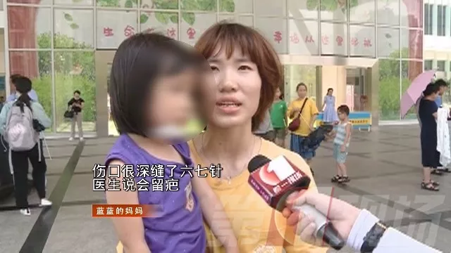 同樣遭遇意外的,還有三歲半的小女孩藍藍,她的下巴被包扎了起來,病例里寫著:她的下巴里面有一條3厘米長,0.5厘米深的傷口。那么,藍藍又是怎么受傷的呢?