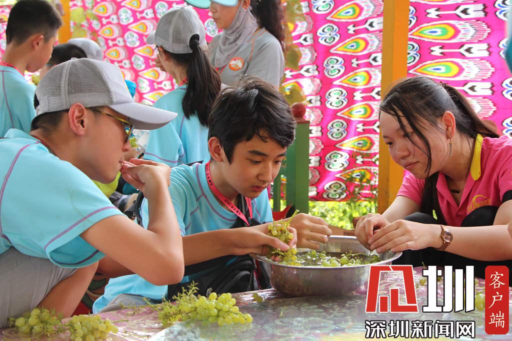 談起吐魯番此行,深圳育才第一小學(xué)五年級(jí)的學(xué)生巫鏑覺(jué)得葡萄溝最好玩,還可以摘葡萄,“這里葡萄很好吃,而且沒(méi)有核,還不用吐葡萄皮?!睋?jù)悉,吐魯番有600余種葡萄,其中的“無(wú)核白”葡萄最具特色,以無(wú)核、皮薄、味甜著稱(chēng)。