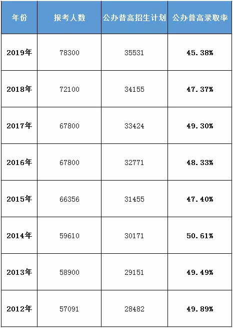 (上圖為小編手工統(tǒng)計的近8年來的公辦普高招生計劃,部分數(shù)據(jù)可能有出入,僅供參考。)