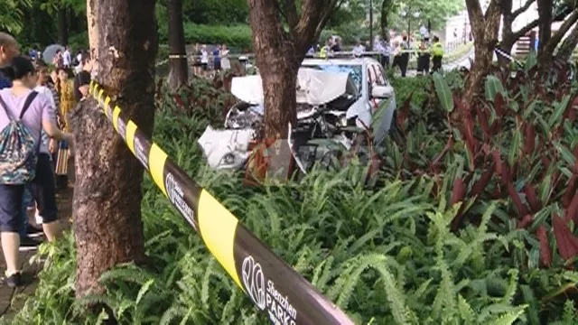 據(jù)現(xiàn)場(chǎng)目擊者稱當(dāng)時(shí)車輛直接碾過人行綠道并撞飛了兩個(gè)小孩,最終車頭撞向荷花塘邊的一棵大樹才停住,如果不是這棵大樹阻擋,這輛車很有可能會(huì)沖向荷花塘里。
