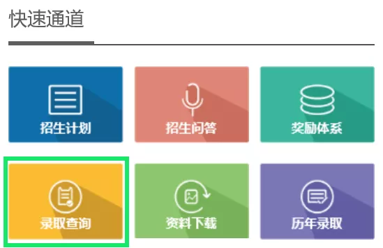 滾動(dòng)鼠標(biāo)下拉找到位于頁(yè)面右側(cè)的快速通道,點(diǎn)擊“錄取查詢”。