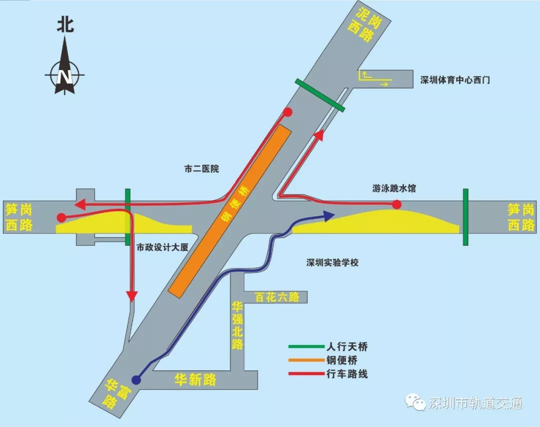 黃木崗路口南轉(zhuǎn)東向(華富路轉(zhuǎn)筍崗西路)、東轉(zhuǎn)北向(筍崗西路轉(zhuǎn)泥崗西路)不在通過(guò)平交路口,改為通過(guò)輔道進(jìn)行右轉(zhuǎn)。(詳見圖4)