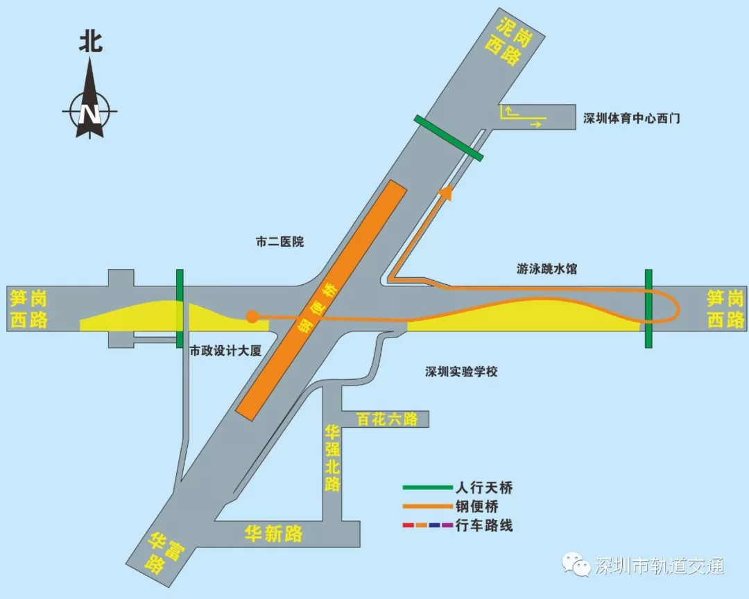 西轉(zhuǎn)北(筍崗西路左轉(zhuǎn)泥崗西路):筍崗西路直行通過原平交路口,隨后在體育館南門位置掉頭口處掉頭,然后通過右轉(zhuǎn)輔道,進入泥崗西路,完成左轉(zhuǎn)。(詳見圖5)