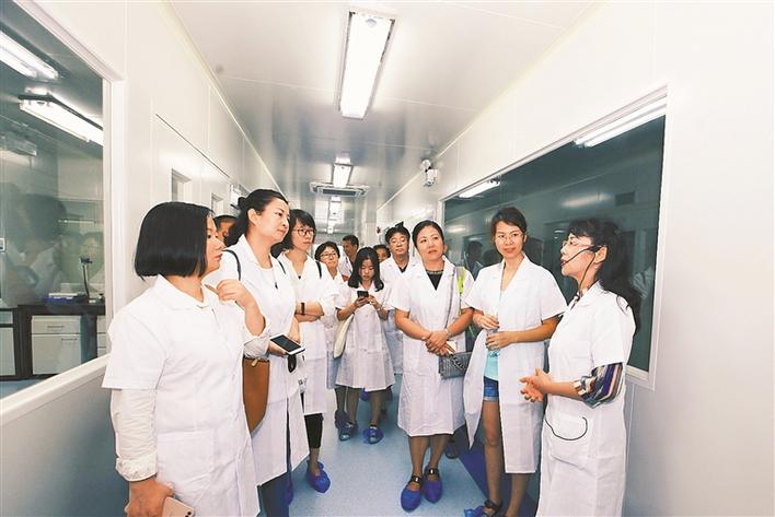 2018年,王多加(右一)在深圳市農產品質量安全檢驗檢測中心的“實驗室開放日”為市民代表介紹實驗室的檢測工作。