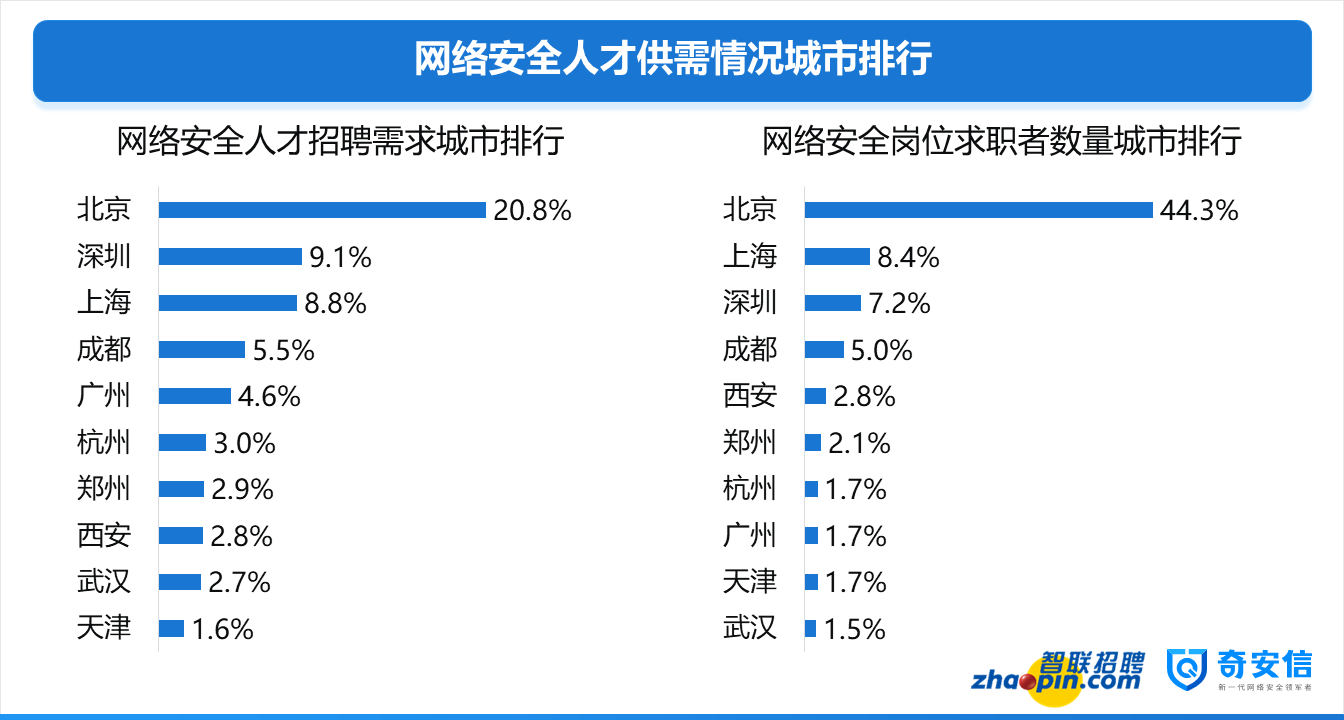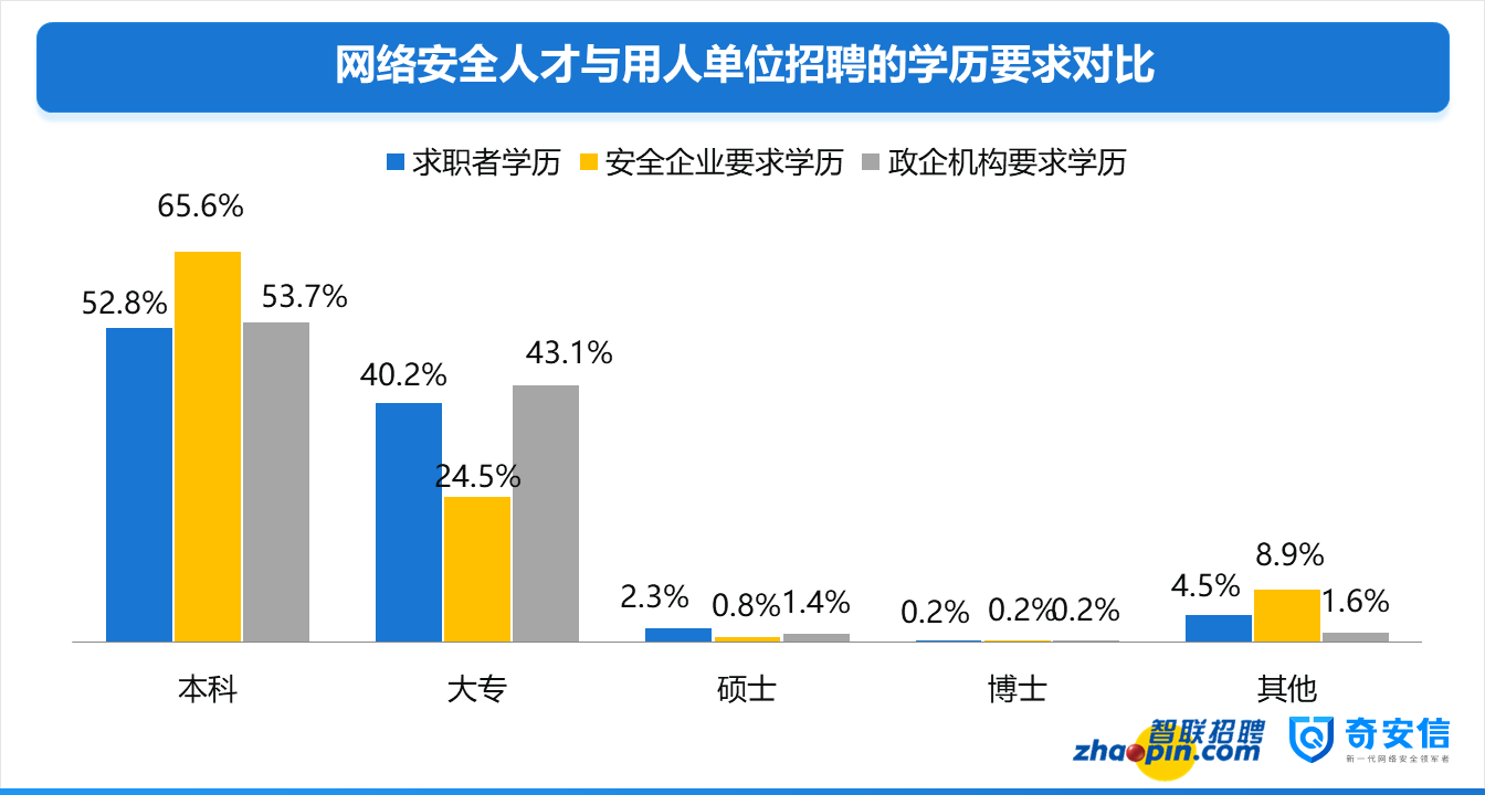 據(jù)了解,自2017年以來,智聯(lián)招聘與奇安信行業(yè)安全研究中心展開聯(lián)合研究,對涉及安全人才的全平臺招聘需求與求職簡歷進行分析,在需求變化,供需結(jié)構(gòu),用人單位特點以及人才自身特征等多個方面對網(wǎng)絡(luò)安全人才市場現(xiàn)狀展開了全面、深入的研究,并連續(xù)三年發(fā)布此項研究報告。