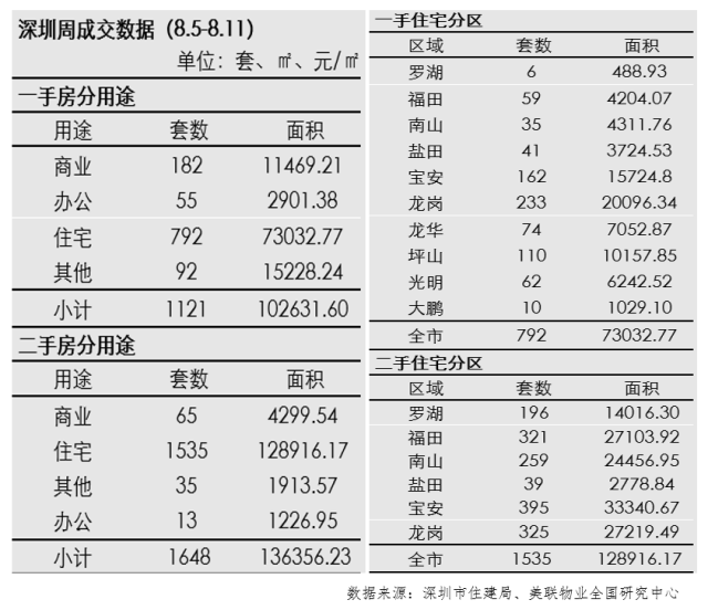 表1:深圳周成交數(shù)據(jù)分類統(tǒng)計表(8.5-8.11)