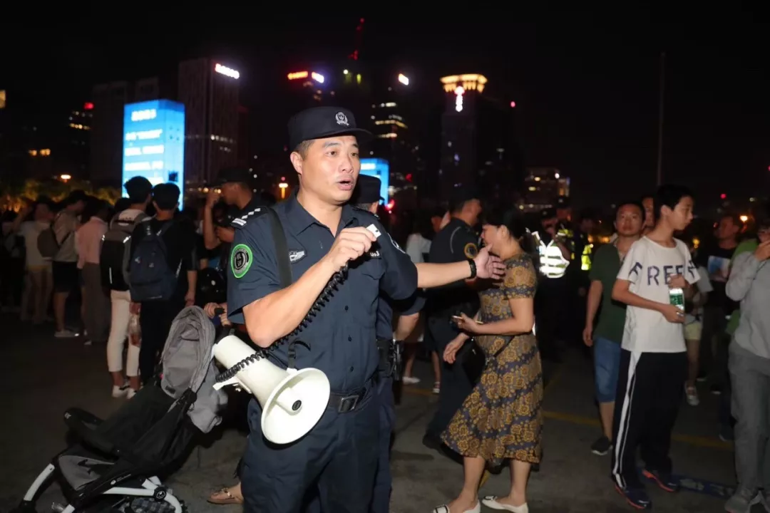 “注意安全,不要擁擠,照顧好老人和小孩。”某廣場擁擠的人群中,福田公安分局機(jī)動(dòng)訓(xùn)練大隊(duì)副大隊(duì)長黃裕青拿著大喇叭喊道。他的臉熱得通紅,汗珠大顆大顆地往下掉,但卻始終沒停下巡邏的腳步。嗓子沙啞了,他便喝口水潤潤,繼續(xù)在人群中穿梭,在維護(hù)秩序的同時(shí),為有需要的人提供幫助。