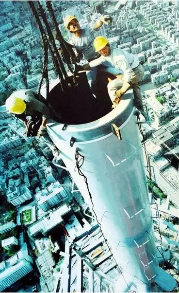 1984年9月4日,國貿大廈封頂。江式高攝