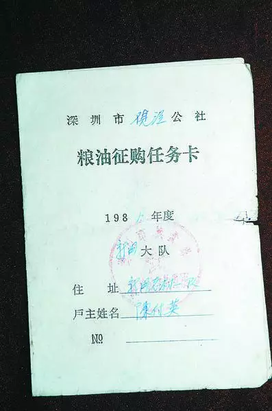 1981年,深圳市觀瀾公社糧油征購任務卡