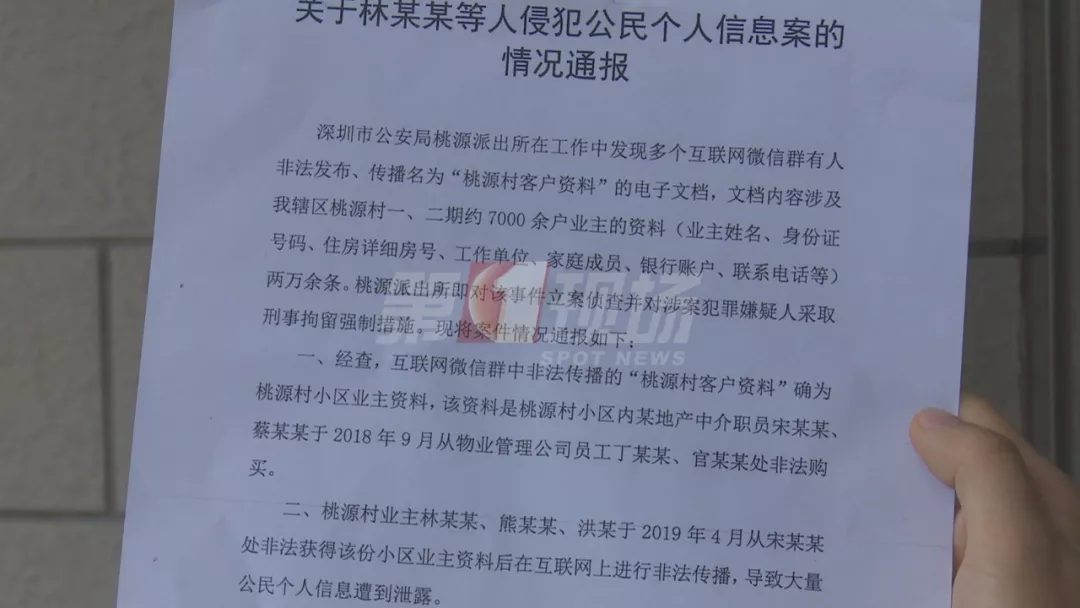 近日,深圳桃源村7千業(yè)主個(gè)人信息遭泄露