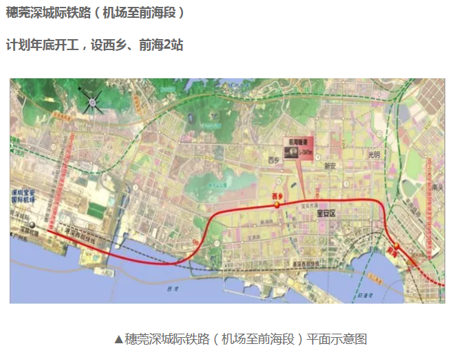 此外,穗莞深城際鐵路至前海延長線也計(jì)劃于年底開工