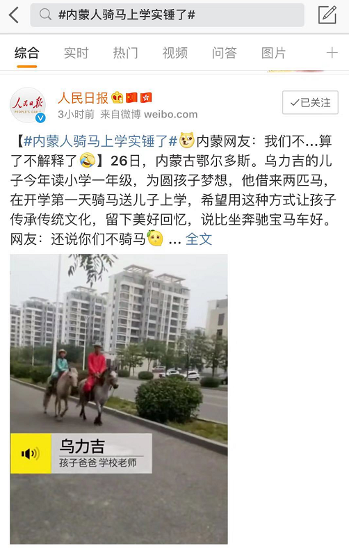 據(jù)說內(nèi)蒙人騎馬上學(xué)