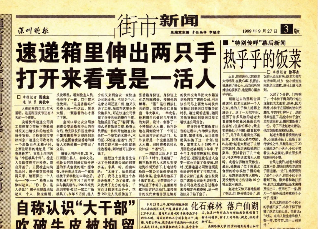 而歷史賦予這支鐵軍的特殊使命任務則是重拳打擊口岸走私和偷渡犯罪。皇崗口岸派出所老職工桂錫梁至今還珍藏著一份些許泛黃的舊報紙,一篇名為“速遞箱里伸出兩只手,打開來看竟是一活人”的報道記錄了1999年9月22日曾發(fā)生的一起偷渡案件。作為當時參與處置的一員,桂錫梁回憶道,犯罪分子將自己裝進一個特制的大木箱中,偽裝成裝有“沖壓模具”發(fā)往香港的快遞箱,計劃偷渡出境,最終在位于皇崗口岸附近的快遞轉運點被警方查獲。