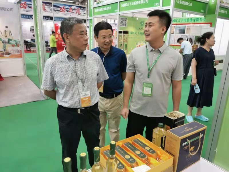 展銷會(huì)期間,市委常委、政法委書(shū)記陳榮高,市農(nóng)業(yè)農(nóng)村局黨組成員、副局長(zhǎng)呂文生一行特意走訪了參加本次展會(huì)的多家企業(yè)。在江西油脂有限公司的展區(qū),陳書(shū)記詳細(xì)了銷售人員紅花山茶油銷售情況,當(dāng)?shù)弥u出不少時(shí)滿意得點(diǎn)頭稱贊,并勉勵(lì)銷售人員要以此為契機(jī),讓更多的上饒優(yōu)質(zhì)農(nóng)產(chǎn)品走進(jìn)粵港澳大灣區(qū),走向全世界。