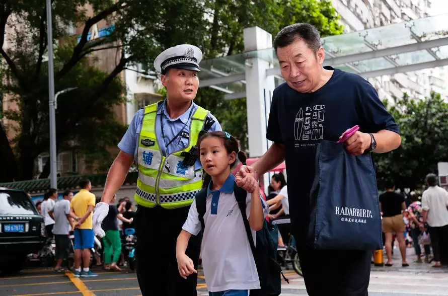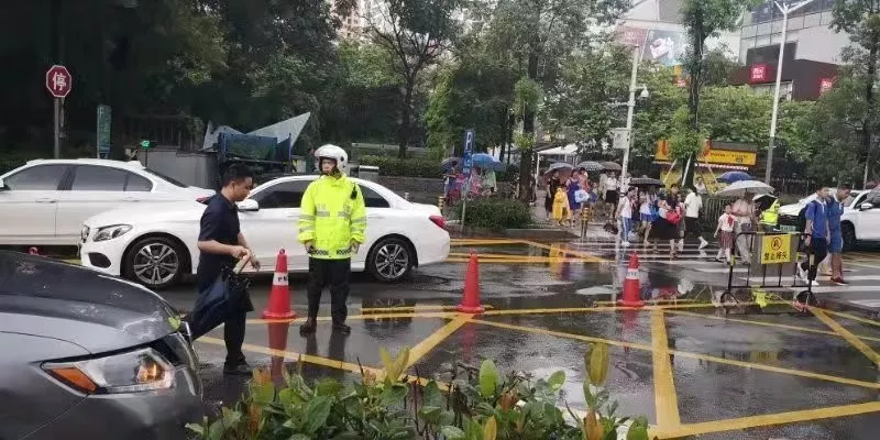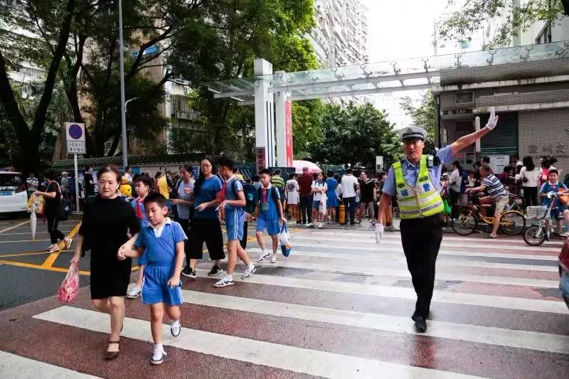 交警蜀黍?qū)⒌饺懈魉行W(xué)校