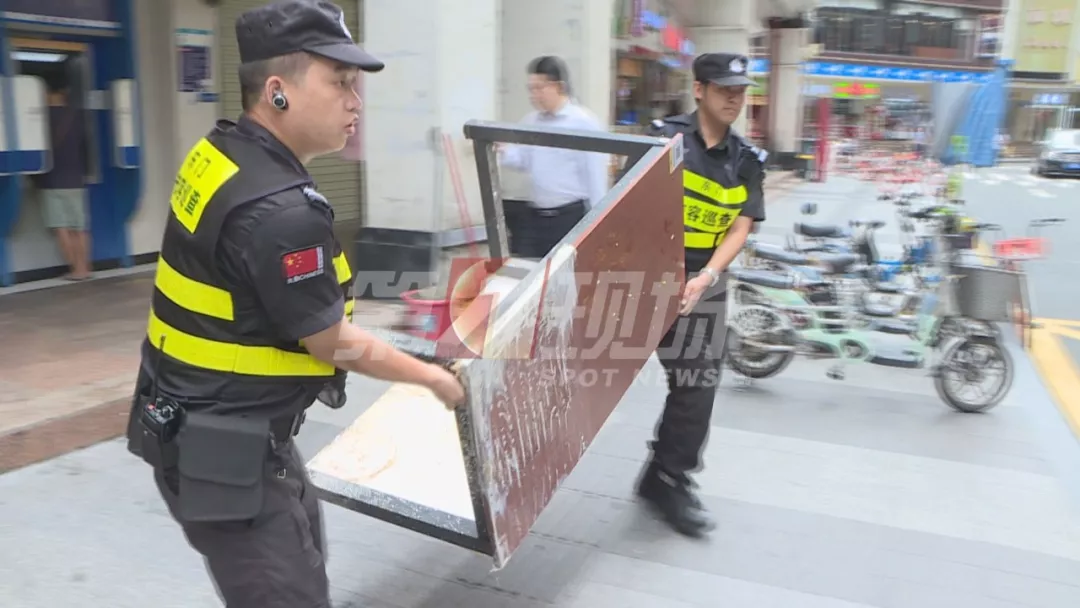 記者以普通市民的身份,投訴了這家門(mén)店的違規(guī)經(jīng)營(yíng)情況。10分鐘后,東門(mén)街道執(zhí)法隊(duì)就來(lái)到了現(xiàn)場(chǎng),向商家開(kāi)具了整改通知,拆除了占道的鍋臺(tái),并暫扣了一批經(jīng)營(yíng)用具。