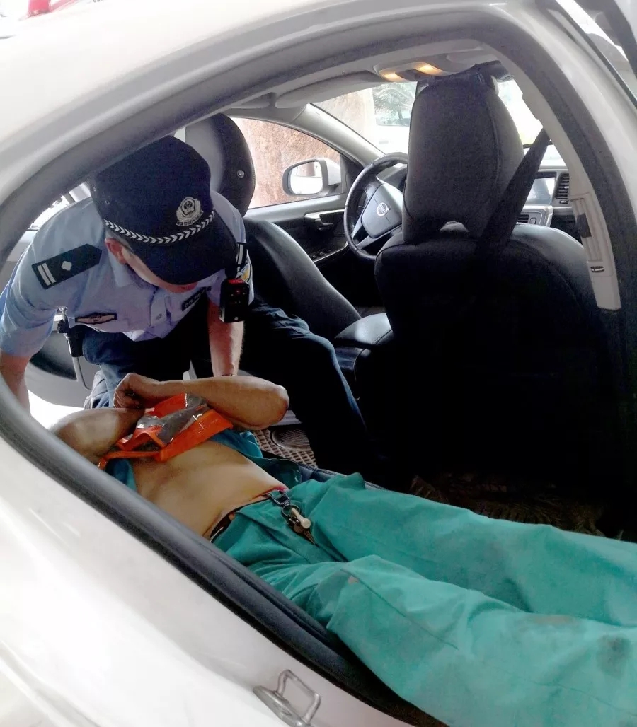 羅明星和交警隊(duì)員還有一名熱心群眾一起把這名環(huán)衛(wèi)工人抬上了警車(chē)。憑借著對(duì)轄區(qū)的了解,羅明星很快將他送到了最近的仁愛(ài)醫(yī)院。