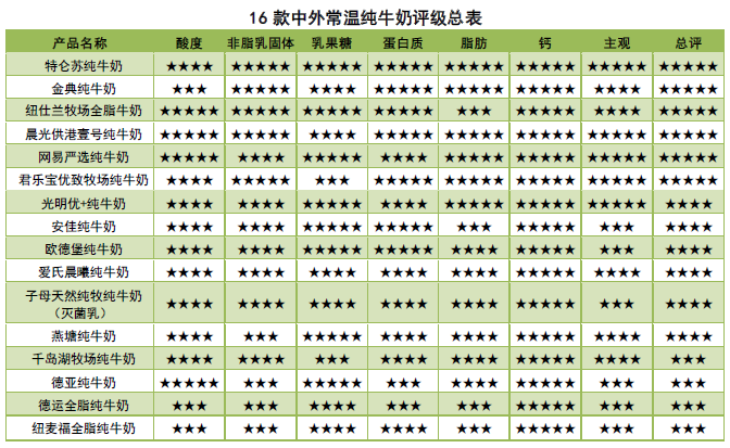 最終,經(jīng)綜合評價,此次中外常溫純牛奶比較試驗中,共6款常溫純牛奶獲五星評價,五款國產(chǎn):蒙牛特侖蘇、伊利金典、君樂寶優(yōu)質(zhì)牧場、晨光供港壹號和網(wǎng)易嚴(yán)選純牛奶;一款進口:紐仕蘭牧場全脂牛奶。
